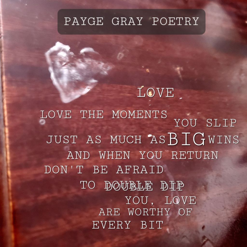 To see my daily writings pulled from the inspiration of life around me, check out Payge Gray Poetry on Instagram. In the meantime, here’s a samply of the consistency that has been planted in new grounds.